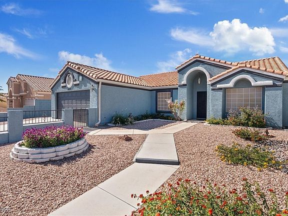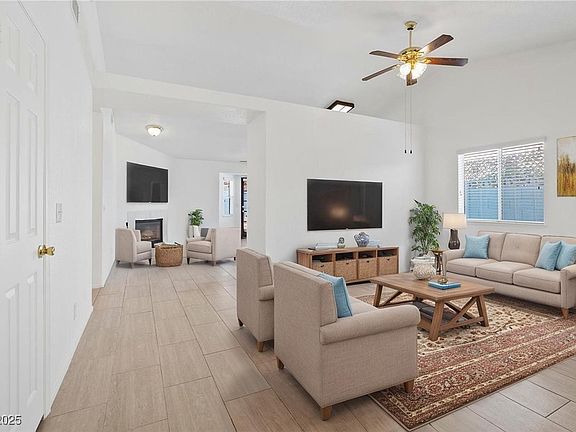 Charming single-story home with no HOA! This move-in-ready property features a fantastic layout with vaulted ceilings in the living area and stone-look rectified tile flooring. The kitchen offers solid stone countertops, an everyday dining nook, and a sitting area with a fireplace perfect for entertaining. Enjoy four bedrooms with vinyl plank flooring and closets with built-in shelving. The primary suite includes a walk-in closet, double sinks, and a brand-new walk-in shower. A separate laundry room adds convenience, and the finished two-car garage features backyard access. The desert landscaped yard includes a full-length covered patio, and the gated front yard adds privacy. Water heater is only two years old. This well-maintained home offers flexibility, comfort, and freedom with no HOA restrictions. A must-see!