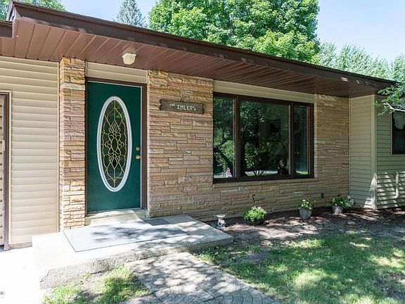 This is a fabulous package is desirable Coloma township. Just a few miles to Lake Michigan, minutes from Paw Paw Lake, 12 local wineries and so many wonderful orchards. You are at a great midway point to South Haven and St. Joseph. This home has it all-Excellent curb appreal with new vinyl siding and roof, a nice flowing floor plan with hardwood floors in main living area. A huge master suite on one end of the home and 3 additional bedrooms in their own "wing". There is a completely remodeled family bath and the kitchen is lovely with maple cabinets and fully remodeled as well. The amazing family room that is featured as a pool room/pub style area is sure to please with custom built in bar and gorgeous stone fireplace. Outside you will find an acre of land with a pond stocked with Bass, Catfish, and Blue Gill, private backyard and an outbuilding 12x17 with cement floor that can serve as a man cave, she shed or hobby area complete with power. Another small outbuilding near the pon