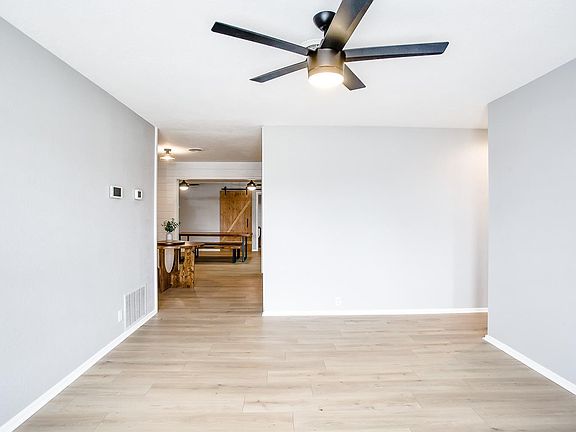 Welcome to this tastefully renovated 4-bedroom, 2-bathroom home with 2+ living areas! Upon entering, you'll immediately notice the fresh paint and new flooring that extends throughout the entire home, complemented by abundant natural light in each room. The kitchen features a pop of color with shiplap that creates a modern feel, while a second living space awaits beyond the kitchen and dining area. Additionally, a rear bedroom offers ample storage and direct access to the expansive backyard. This home is ideal for versatile living, catering to your specific needs. The backyard, complete with a workshop and two storage sheds, provides ample space for various activities. Conveniently located near an abundance of shopping and dining options, and easy access to Loop 289! Seize the opportunity to call this beautifully remodeled house your new home, call to schedule your showing today!