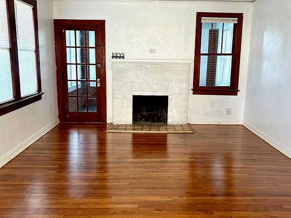 Enclosed porchArched doorwayCurb appealBrick mantled fireplaceWood floorsCharm and vintage featuresNewer kitchen cabinets