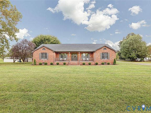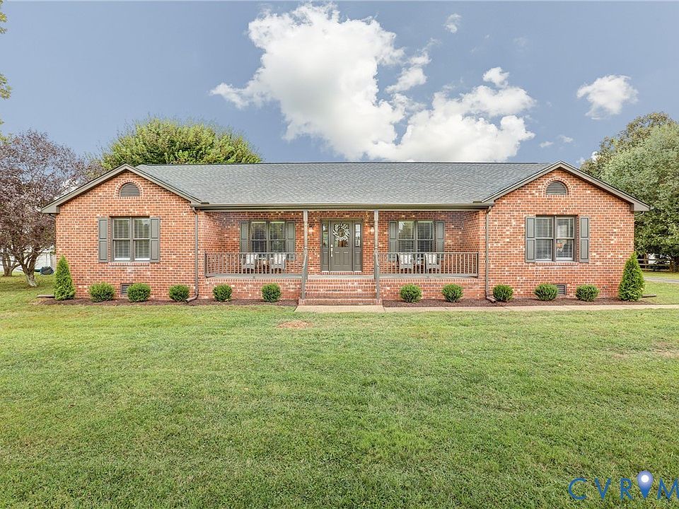 Picture perfect renovation on 2.26 acres in the Elko area of Henrico County! Exuding style and charm, one level living at its finest awaits you in this spacious brick rancher. A paved driveway and parking area will be appreciated upon your arrival. Notice fresh landscaping as you take the aggregate walkway to the masonry front porch and entrance. Stepping in, you'll be awed by beautiful hardwood floors and an open floor plan enhanced by the cathedral ceiling. A new electric corner fireplace in the family room adds to the cozy factor and French doors lead to a sun room you'll adore! More French doors allow exterior access to a brand new, stamped concrete, patio! Back inside, the kitchen space boasts quartz counter tops, brand new stainless appliances, an island with an overhang for seating, and a bay windowed dining area! This split floorplan situates two bedrooms and a full bath at one end of the house and the master suite at the other. And what a suite it is! Here you'll find new carpet, three closets and an all new luxury bathroom equipped with a freestanding soaking tub, a double vanity and a tiled shower that will wow you! Heading towards the garage, you'll encounter the laundry room and even it will impress with; two closets, a quartz counter top, a sink, and shelving. This oversized, rear entry, garage provides automatic openers, a pedestrian door and a conditioned storage closet. Taking a walk outside, you'll notice a brand new roof and a Generac standby generator. The HVAC system was installed in 2022. This tranquil setting (no through traffic on Hurop Rd) offers a rural feel with convenience as interstates are easily accessible offering quick commutes to downtown Richmond and Williamsburg alike. New Kent wineries, golf courses and historic sites are only a short drive away. And oh the possibilities for this deep back yard! Plant a garden, raise some chickens, enjoy outdoor sports or just chill on the patio with family and friends while watching the deer across the field and enjoying the good life! A gem.