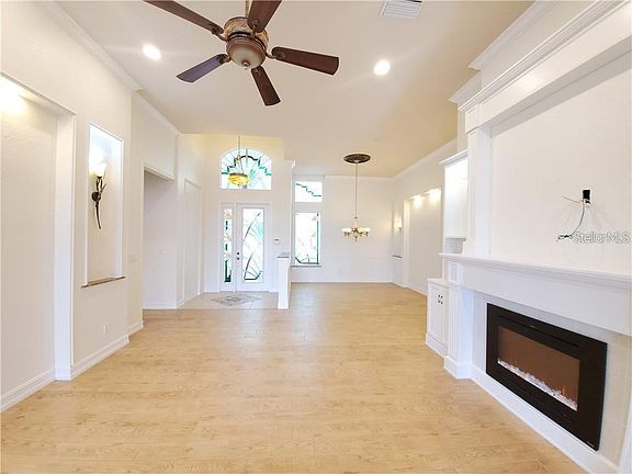 Another of GL Homes stunning Floor plans. This is known as The Napoli. Offering THE Best Lake View ($60K Premium) in Valencia Lakes! Ask well informed Agent for Upgrades list. $25K Custom STAIN GLASS windows + screened front entryway. ALL windows are tinted. Intercom in entire home. Formal Dining Room + Living Room + Electric Crystals Fireplace welcomes you as you step into the 18FT Entryway with glorious views to the Lake + $76K CUSTOM REFLECTION Spa type Pool.! The Master Bedroom+ Tray Ceiling Sliders to Pool. PLANTATION SHUTTERS+TWO Built Out California Double Walk In Closets! + Master Bathroom En-Suite with LUXURY complement of JACUZZI Tub MEGA Shower Double Vanities Stained Glass Window. Next to the Dining Room is access to Garage through Laundry Room with Cupboards+ Butler Sink. 3 Car Garage is optionally Air Conditioned. Water Softener Insulated Garage Doors. Off the Hallway is 4th Bedroom/Office with built in shelving Plantation Shutters. Hall Bathroom with lush upgrades which is next to the 3rd Bedroom. In the KITCHEN you have GRANITE Surfaces, 42" Kitchen Cabinets TWO Built in Ovens +Microwave. Newer Fridge Freezer/Dishwasher. Breakfast Bar and Breakfast Nook. Family Room with surround sound speakers leads to GUEST SUITE+ California Closets and Pool Bathroom. Enter the perfect entertaining area around this custom designed Reflection Pool (70K)with Private BBQ Area for Dining provides SUNSET views over the Lake. Swan Fountains Gas Burner features Custom outside lights. TILE Roof/ AC x 2. No expenses spared! VALENCIA LAKE offers a 40,000 S.F. clubhouse including a 5000 S.F. Fitness Center. Billiards. Arts and Crafts. Card Rooms. Entertainment Room along with a Stage for Movies and Show events. PLUS Steam & Sauna Rooms. TWO Aerobics rooms. Massage Room. PLUS a Demonstration kitchen. Outside there is popular Pickleball Courts, Bocce Courts, Tennis Courts. Shuffleboard. PLUS 3 pools. Includes A Lap Pool, 1 Resistance Pool, 1 Resort Style Pool) Plus a Hot Tub. In the clubhouse There is also a Bistro for breakfast & lunch & some dinners. You have worked hard all your life and this is THE PLACE TO BE! Call me now as this home is a definite "MUST SEE" Tenant occupied. Call Agent for more precise info. Tenant's own Washer and dryer and Stainless Steel fridge/freezer in home now will be replaced back with the ones in these photos before Closing. Center Island in Kitchen is tenants and does not convey. All info TBV.
