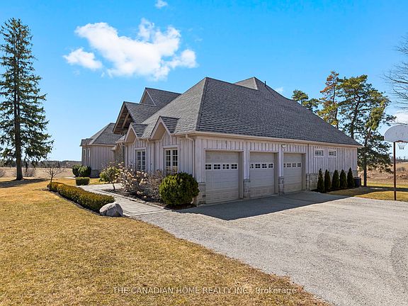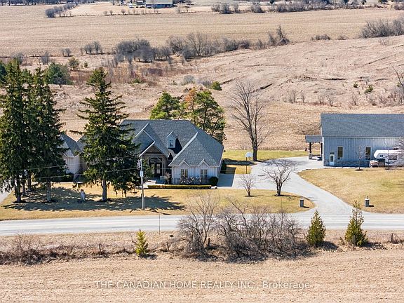 Welcome home to this "one-of-a-kind" CUSTOM LUXURY ESTATE" in Raglan, set on 51 picturesque rolling acres, including 30 acres farmland. This stunning property offers over 7,000 sf of living space, designed with unparalleled craftsmanship & high-end finishes. This 6 bedroom, 6 bathroom home has exquisite interior features, a grand entrance w/custom granite flooring, hardwood floors and soaring high ceilings throughout. Modern, updated kitchen featuring granite countertops, a custom marble backsplash, B/I stainless steel appliances with gas stove, commercial grade fridge & freezer perfect for entertaining. Panoramic views from every room, filling the home w/natural light, open concept family room with cozy fireplace, an additional media room with 16ft ceilings & gas fireplace. Coffered 10ft ceilings in both the living & dining rooms, all the bedrooms feature their own ensuite bathrooms, offering ultimate privacy. Professionally finished expansive basement - ideal for a potential in-law suite or guest space with a bar, 3 piece bathroom and a luxurious sauna for relaxation, designer finishes throughout, including custom vanities, upgraded light fixtures, skylights, custom crown molding and trim. Premium upgrades & outdoor features include; new roof(2023), furnance (2022), UV system, & water softener, 90% of windows replaced in the past 3 years, expansive deck w/custom landscaping offering a breathtaking south/west view outdoor retreat. This exceptional estate is truly outstanding, blending luxury, functionality, and natural beauty. Separate 2400 sf. Shop with 18ft Ceilings, prestigious offices and a 1600sf. never lived in 2 bedroom apartment. See feature and attachment sheets. Truly a Designers Dream with ENDLESS POSSIBILITIES!