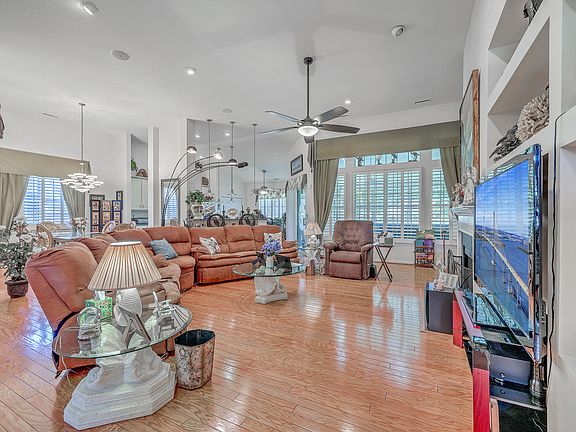 Introducing this exceptional one-story home in the highly sought-after Village Green subdivision, featuring an open floor plan and a three-car garage! With 3 bedrooms plus an office, 2 full baths, an eat-in kitchen, a great room, and a laundry room, this home is in immaculate condition and ready for its new owner.The beautifully landscaped yard adds to the home's curb appeal, while the high ceilings, tall windows, and elegant plantation shutters flood the interior with natural light. The master bedroom is thoughtfully separated from the other two bedrooms, providing privacy and comfort. The spacious kitchen overlooks the great room, making it perfect for entertaining.Relax by the cozy gas fireplace on cooler evenings, creating a warm and inviting atmosphere.This home backs up to a pond, offering serene views that make your mornings even more enjoyable. This impressive home won't last long schedule your showing today!