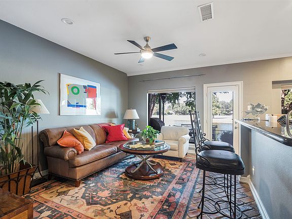**MOTIVATED SELLER!** Experience luxury living in this beautifully updated smart home condo, perfectly positioned as an end unit with sweeping views of the lake and Bent Tree Country Club fairways golf course and water views from every major room. Thoughtfully renovated with high-end finishes throughout, this home combines elegance, comfort, and modern technology. Step inside to find solid core doors, newly installed marble and hardwood floors, plush luxury carpeting, designer fixtures, energy-efficient LED lighting, and keypad entry. Enjoy two spacious living areas—both with serene water views—plus a formal dining room featuring unique patterned brick flooring and a sleek marble wet bar, ideal for entertaining. The formal living room stuns with vaulted ceilings and a cozy fireplace. Upstairs, you'll find a landing with custom built-ins and ample storage, along with two private bedroom suites.*One Bedroom being used as an office* Both bathrooms have been completely remodeled, including the show-stopping primary bath, which features backlit mirrors, under-cabinet lighting, a frameless glass shower with rainfall head and multiple spray configurations for a spa-like experience. The primary suite also offers a private balcony with peaceful views. Additional highlights include plantation shutters, resort-style community amenities—pool, tennis courts, and gated access—and, of course, breathtaking views from nearly every angle.