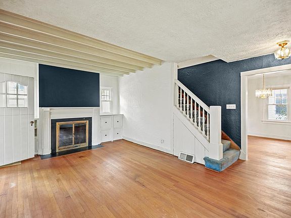 Built-in bookcasesNatural wood burning fireplaceBeautiful hardwood floorsQuaint sunroomDeep backyardMature tree