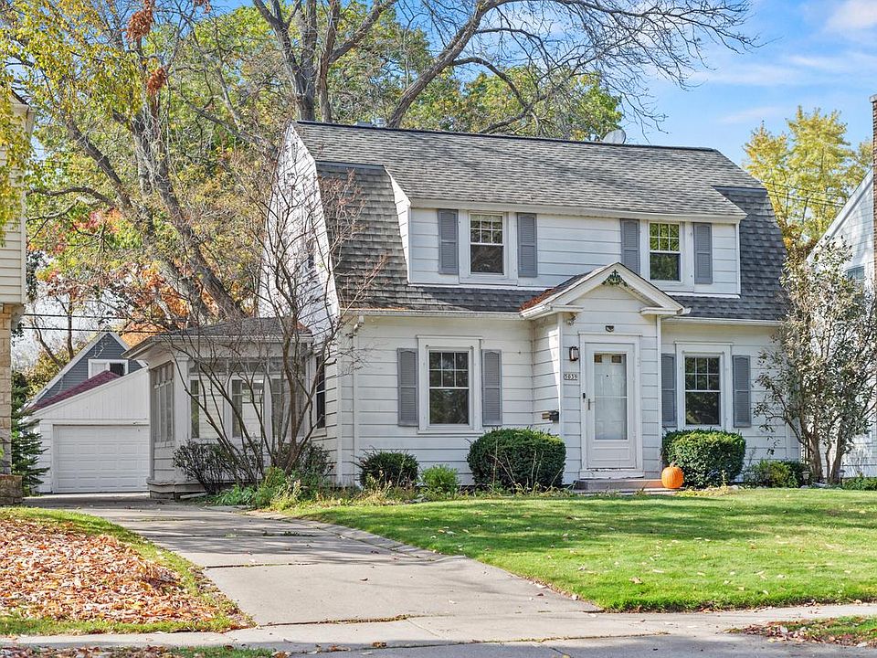 A charming Whitefish Bay Dutch Colonial featuring 2 bedrooms and a full bath upstairs. The home boasts beautiful hardwood floors throughout, adding warmth and character. The living room is accentuated by a cozy natural wood burning fireplace flanked by built-in bookcases, perfect for reading and relaxation. Sunlight fills the quaint sunroom, creating a lovely retreat. Outside, a detached 2.5-car garage sits in the deep backyard, shaded by a stunning mature tree. The property is conveniently located just a block from Cahill Square and The Craig Counsell Baseball Diamond, close to Whitefish Bay High School, and only two blocks from Donut Monster. Part of the shared driveway connects to the house to the south, enhancing access. Many mechanical updates listed in the document section.
