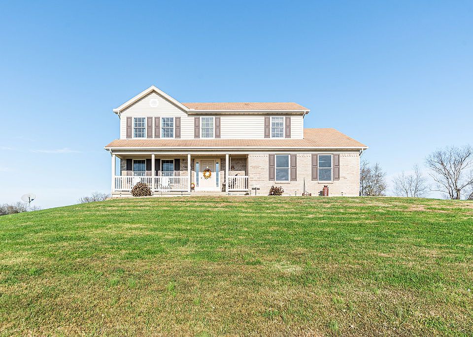 Meticulously, well-maintained 2-story traditional home situated on 11.15 acres of privacy with sweeping nature views. 4BR, 2.5 BA floorplan! Only minutes from the Ohio River with easy access to scenic US 52. This beautiful home features an open eat-in kitchen with prep island, oak cabinets and large pantry, formal dining room, powder room, laundry room, living room, and a bonus great room with gas fireplace all on the first floor. Boasts hardwood and ceramic tile throughout the downstairs. Upstairs there are four spacious bedrooms including a master suite with walk-in closet and an ensuite bathroom. There is no lack of storage with a linen closet in the hallway and 2 of 3 guest bedrooms having large walk-in closets. There is also an additional full-bathroom on the second floor. Want more? Check out the full finished walkout basement with sliding doors opening to a large patio, a half-bath with linen closet, and oversized storage room. This space makes a great family room with a tiled bar and two separate areas perfect for watching movies or gaming. Home has an attached oversized garage and there is a 30x40 outbuilding/shop with concrete floor and attached shed. Property features fenced in acreage for livestock. This must see home is move-in ready!