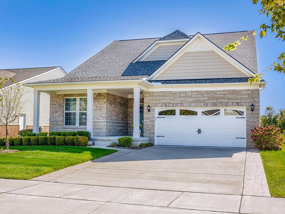 Meticulously maintained 4-Bed, 3-Bath Ranch with upper loft and guest suite! This home is loaded with upgrades, including wainscoting throughout, a stunning fireplace with custom trim, quartz countertops, premium appliances, and wood floors. The primary suite offers a walk-in shower, expanded storage, and a spacious walk-in closet. Outdoor living shines with a wraparound Azek Trex deck, stamped patio, and views of open space behind the home. Upgrades include stamped driveway extensions, high-efficiency HVAC, air purification system, humidifier, FOX storm doors, and laundry room cabinets. Bright, airy, and north-facing for perfect light all day — this home blends comfort, style, and function in one move-in-ready package.