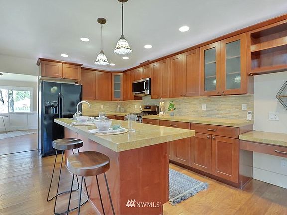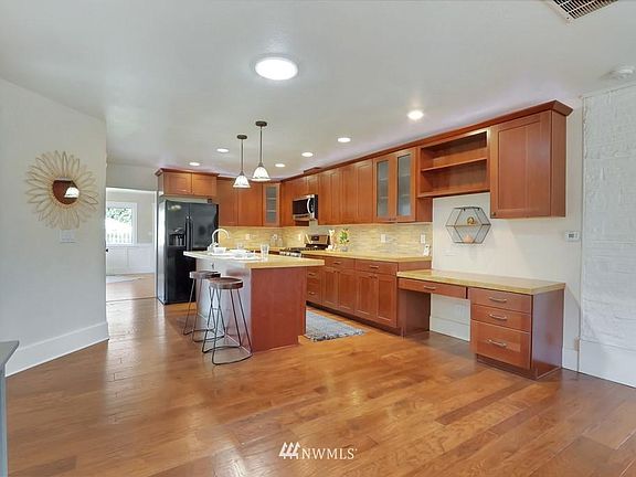 Country living in the city! This 1500 sq ft. 2 bdrm 1.75 bath on .22 acres has been upgraded w/meticulous details, & it shows as soon as you step inside. Kitchen w/stunning new cherry cabinets & built in desk, concrete counters w/tile back splash, stainless appliances including gas stove, dishwasher & microwave. Family room features ductless A/C heat pump & pellet stove. Master suite w/custom tile shower, while guest bath includes a claw tub. Step outside to relax on your beautiful covered deck. Recent upgrades include: tankless water heater , 1 car detached garage/shop. 4 year old roof, 220 outlet for welder. Huge backyard, apple trees, RV Parking & No HOA's. Located less than 4 minutes from Good Sam Hospital & Puyallup Fairgrounds.