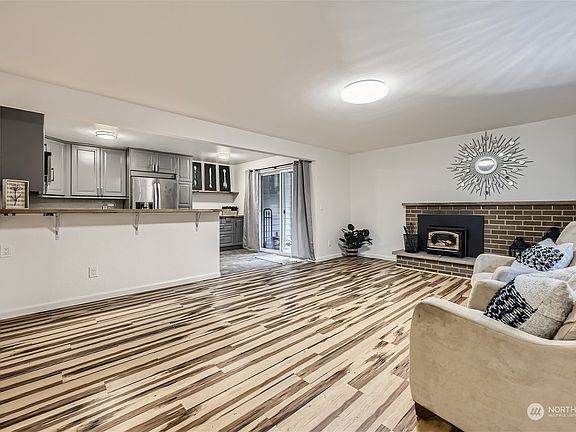 Located in the sought-after Queensborough community of Bothell, this 2-bedroom ground floor condo offers serene living on a quiet street. Natural light from large windows showcases recent upgrades, including kitchen cabinets and butcher block countertops. Fresh paint throughout, lighting and new bedroom closet doors enhance the interior. Quiet back corner unit with your own private patio is great for additional entering space. Unwind in the bright living room with a wood-burning fireplace/stove. Ea. condo has a covered parking space in the carport with storage. Shared green space behind condo. Conveniently located near amenities, freeway, and bus line, this updated condo is ready for you to make it your own.