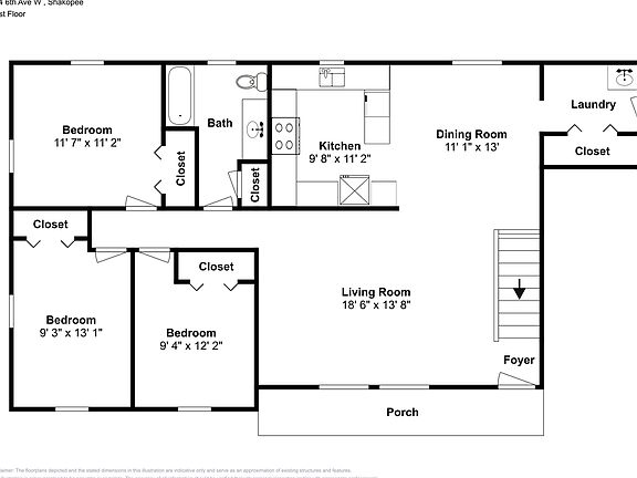This 2296 square foot single family home has 5 bedrooms and 1.5 bathrooms. This home is located at 504 6th Ave W, Shakopee, MN 55379.