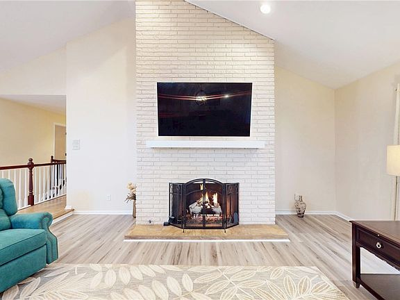 The finished lower level expands the living space with a large entertainment area anchored by a second gas