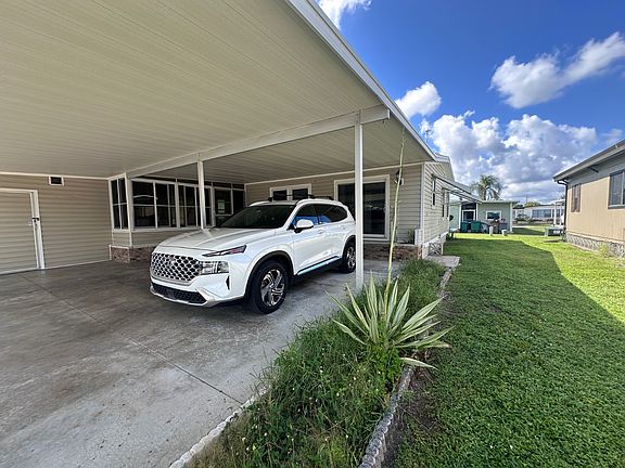 This well-maintained two bedroom two bath home is ready for you to start your Florida dream! It has an awesome 4 car+ carport with a huge attached shed. The home is mostly carpeted except for the bathroom and the kitchen. The kitchen comes with all appliances and newer cabinets & countertop. Recently received a new stove vent in the kitchen. A new roof was installed in 2022. The AC was new in 2014 & serviced on 8/15/25 for its 6 month checkup. Everything passed inspection. It has all new electrical including 220 electric & panel box in the shed & also one in the house. It has all new plumbing & a newer water heater. This home does not have a washer dryer. The Vapor Barrier was new in 2025. All the windows, are hurricane impact windows throughout the home. The lanai has a concrete floor which may be tiled or carpeted as you like. The bathrooms & the kitchen have linoleum flooring. Every window is covered with newer storm awnings in 2022. It is near the pool and a great place to just lay back and relax and enjoy your retirement! Buccaneer Estate has many amenities, including 3 swimming pools, 4 Pickleball courts, 3 clubhouses and so much more to offer. It is near the beaches, shopping & great medical facilities. Call today for more information.
