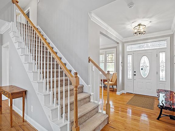 This stunning home offers an open floor plan with beautiful granite countertops, an eat-at bar, and a breakfast area. Formal Dining Room.  Family room features cathedral ceilings,  gas log fireplace and open floormplan to the kitchen.  The first-floor primary bedroom features a trey ceiling & walk-in closet.  Beautifully updated primary bathroom with double vanities,  free-standing tub and separate shower.  The spacious secondary bedrooms both have walk-in closets. Great size bonus room along with walk-in storage. Enjoy the peacefulness of the private wooded backyard  from the comfort of the screen porch. The added bonus of a chicken coop and 4 raised garden boxes make it easy to live sustainably and grow your own fresh produce.  Oversize garage and walk-in crawl space.  No HOA dues.