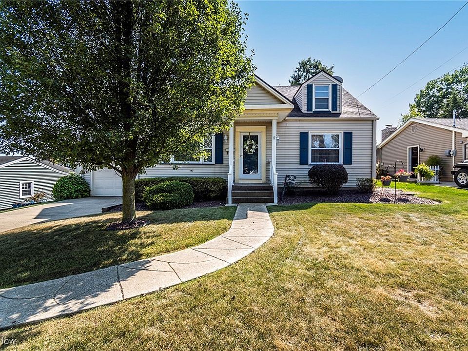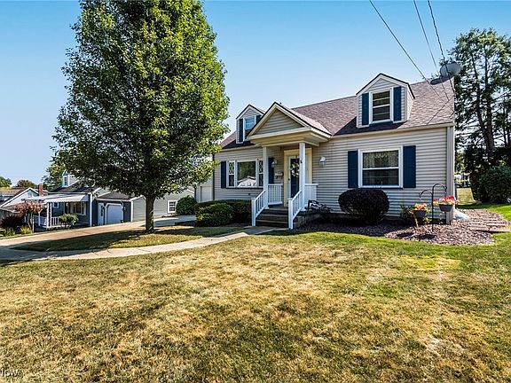 Welcome Home! This one-owner 3 bed/ 2 bath cape-cod is situated in Struthers, convenient to restaurants and shopping. As you enter through the front door you are greeted into the second living room, currently being used as a dining room, featuring original hardwood flooring, flowing into the 2 bedrooms on the main floor, one of which has laundry converted into the closet for convenience, and down the hall a newly updated bathroom with a walk in shower. The eat in kitchen offers beautiful oak cabinetry, ceramic tile flooring and provides access to the basement and garage. In the back of the house you will find your living room oasis, complete with wood beam ceilings, newer carpeting, gas fireplace, and plenty of natural lighting. Upstairs you will find your third bedroom with hardwoods, plenty of closet space and lots of windows and lighting. In the basement you will find another living space featuring a workshop room and a second kitchen with a range, microwave, with an abundance of cabinetry for storage. Additionally, you have a dressing room area with a vanity leading to the second full bathroom. Moving along to the back yard, you have the most amazing covered porch and a large shed for storage. Call today to schedule a showing!