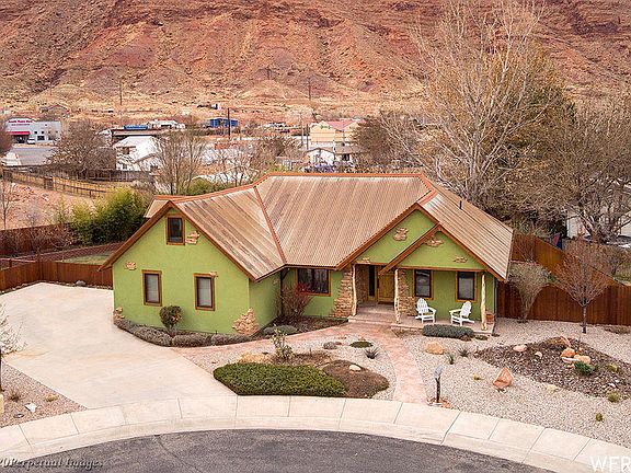 REFINED CITY LIVING- For the discerning Buyer looking for prodigious quality, your Moab home is here. Laden with exquisite finish, this 4,086 square foot beauty welcomes a sense of chic and splendor with its culmination of convenience, comfort, and precision. The custom wood features start at the welcoming solid oak front door, to the tongue & groove pine ceilings & soffits, knotty alder trim & interior doors, French oak floors, juniper beams, quarter sawn oak cabinetry, to the exterior cedar window trim and cedar decks. The inviting living area focuses on the cozy custom sandstone fireplace, to entertain with ease with proximity to the formal dining room. The kitchen is every Chef's dream- granite counters with Raku tile back splash, Mirabelle plumbing fixtures, all Wolf & Sub-Zero appliances, six burner dual fuel gas range, steam convection oven, professional exhaust hood, butler's pantry and reverse osmosis system. Lavish your senses with the remote main bedroom suite with exceptional bathroom finish- travertine tile, soaking tub and separate shower. Enjoy the private patio with hot tub access. Two additional bedrooms with a finely finished bathroom finish off the main floor. This home offers a bonus room above the garage- ready for your much needed home office. The fully finished walkout basement has brand new slate tile, knotty alder doors & trim throughout with 2 bedrooms, full bath, family room, laundry and recreation room, as well as a room ready for you to complete as your sauna or wine cellar. Tucked away on a shady cul-de-sac within walking distance to Moab City center, the .28 acre yard is expertly designed with xeric & water-wise plantings and garden beds. This distinguished opportunity is filled with extras- custom forged iron railings, Jeld-Wen casement windows, Hunter Douglas window coverings- the list goes on! Welcome to perfection.