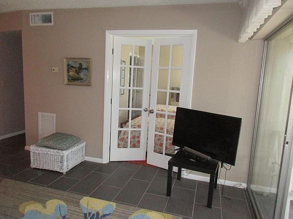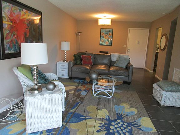 This cute rarely offered 2/1 apartment in this 55+ community is move in ready. The second bedroom which has french doors to the living room can also be used a den. Walk to the pool and clubhouse which are located across the street. There are also great walking paths around the lake. A community bus to take you shopping and an active clubhouse that offers different events this complex is conveniently located near shopping, restaurants and the airport. A credit score of 650 is required by the association. No rentals the first 2 years of ownership. One dog permitted only with a companion letter from the doctor. All room sizes are approximate.