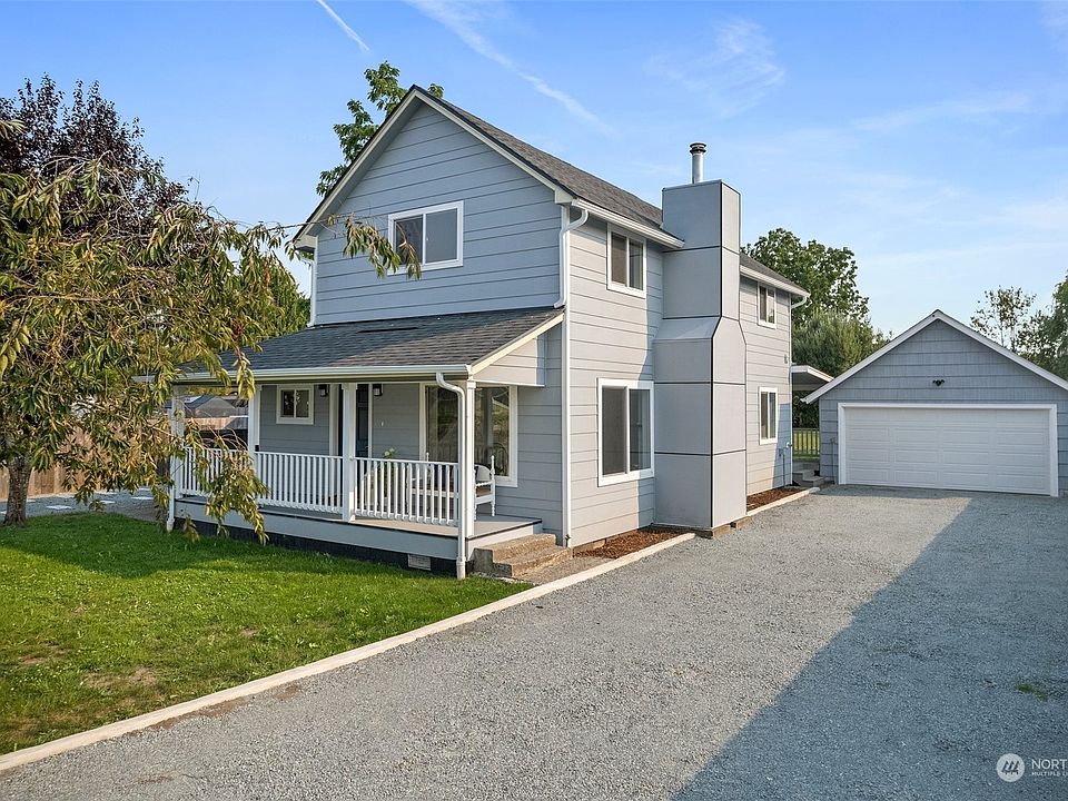 Welcome to this Newly Remodeled Home in Orting! Conveniently located in town but with a rural feel. This huge 15,400 sqft. level lot features tons of parking, two driveways for your RV, boat & all your extra toys. This home has been fully remodeled: New roofs, siding, windows, fencing! New interior from studs up ~ electrical and plumbing, new high quality SS appliances, quartz CT’s, luxurious chef's kitchen & island, pantry. Primary on main floor, wic, 3/4bath, stunning full baths on main and second floor, three mini-split units HVAC for heating & cooling. Huge front and back covered porch, patio & deck perfect for entertaining. You will love the huge 2 car garage with shop & loft storage. This one is a MUST SEE!