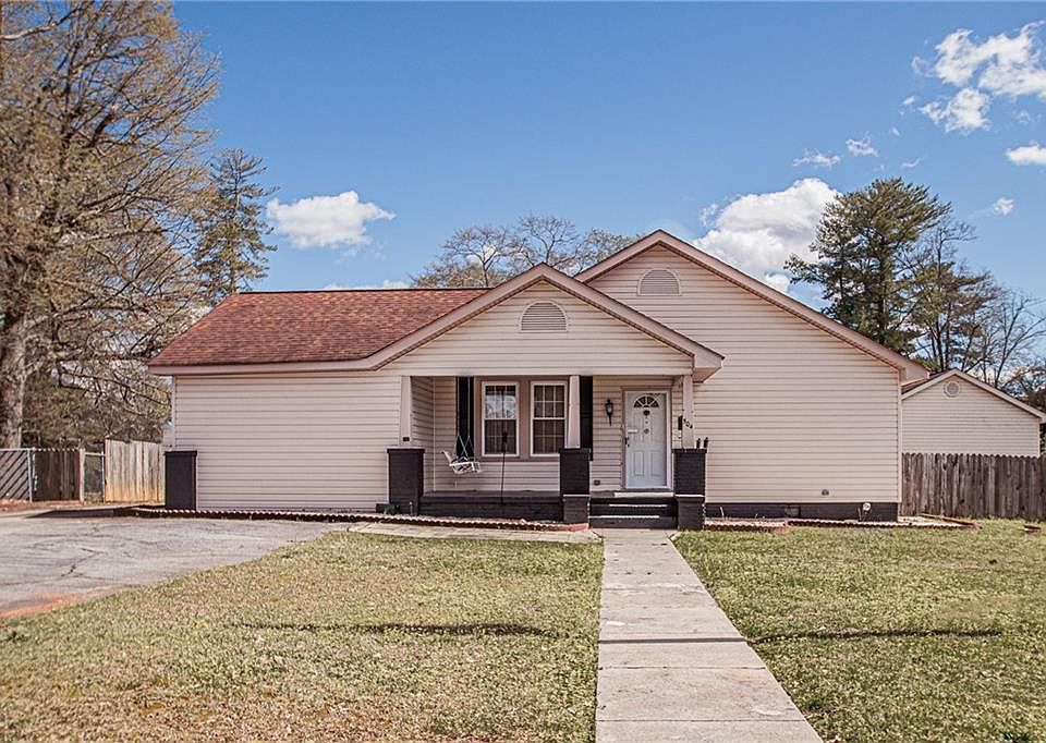 It will be love at first sight when you pull into the driveway of this adorable cottage style home located in Easley city limits right across the street from East End Elementary and within walking distance of downtown Easley. You will know you are at the right place when you see the beautiful American flag welcoming you home. When you walk onto the rocking chair front porch you can just imagine the relaxing evenings you will spend in the welcoming porch swing reading a good novel. Once inside the home you will see that the present owner has taken a lot of pride in keeping the home in pristine condition. He has made several modifications to the home including a larger laundry room, beautiful new cabinets in the kitchen, a jetted tub in the huge master bathroom that also has a private water closet and double sinks. There is new vinyl flooring in a large part of the home. It also has updated wiring, new plumbing and a security system. Let's not forget about the cozy bay windows, also. When you step outside you will see a large 20x40 building that has it's own heating and air. It is fully insulated and finished on the inside with a half bath. This could be a perfect in law suite, game room, man cave or she shack. The possibilities are endless. There are 2 additional storage buildings. Building 2 is a 13x17 and building 3 is a 12x24. Both are have electrical. One thing is certain, you will never run out of room to store your treasures. Call today to take a tour of this lovely home. The may be "The One" that you have been looking for! If square footage is important, buyer or buyers agent can measure for accuracy.