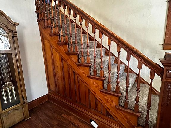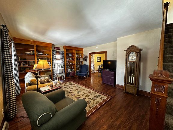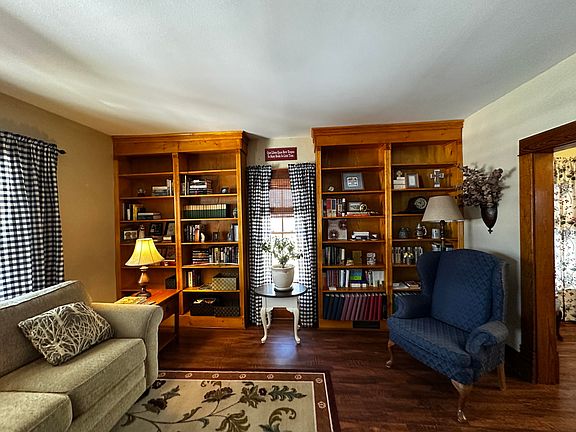 Charming 2-story home with character and modern touches. The stunning wrap-around front porch welcomes you into such a quaint atmosphere. Inside, you'll find a spacious open staircase, beautiful built in book cases, 3 comfortable bedrooms, and an upstairs den or office-perfect for working from home or as a cozy retreat! Main floor laundry plus newer floor coverings add a fresh touch throughout. Outside, enjoy the fully fenced yard, ideal for outdoor gatherings, family, or pets. A detached 24'x20' garage plus a carport, and a handy backyard storage building to provide plenty of space for your storage needs. This home is truly a gem-don't miss the chance to make it yours!