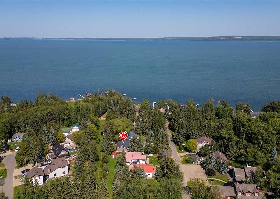 Discover your ultimate four-season retreat at the southern tip of Pigeon Lake in the summer village of Norris Beach. Nestled among towering spruce trees, this charming cabin offers privacy, comfort, and direct water access—all within a two-minute stroll to the shore. Interior Features; Two cozy bedrooms and a full four-piece bathroom. Open-concept living area with abundant natural light. Kitchen appointed with oak cabinets, subway tile backsplash, double sink, extra counter space, ceramic stove, fridge, and dishwasher. Cabin comes with newer vinyl siding, soffit, and fascia. Furnace approximately 5 years old. Big Bonus - the property is tied into municipal sewer for a way more convenient experience. Outdoor & Lot Highlights; Wrap-around deck ideal for lounging, morning coffee, or alfresco dining. Ample storage throughout to keep gear organized. Expansive front yard shaded by mature spruce for peaceful relaxation. Backyard designed for entertaining—fire pit area and room for lawn games. Bunkhouse with tin roof and air conditioning, perfect for guests or in the summer or winter. Property backs onto green space, providing a secluded feel and direct water access. Just two blocks from Black Bull Golf Course, Petro-Canada, and village amenities. RV parking with 220V plug right at the driveway. Easy walk to lakeside beaches, boat launches, and scenic trails. Large private beach area for the neighborhood residents to enjoy in the summer and store their boat docks in the winter. Ideal for year-round living, seasonal rentals, or a weekend getaway. Don’t miss the chance to own this very affordable lake retreat.
