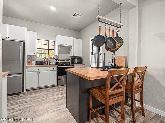 Move in ready! This beautifully remodeled home has three bedrooms, two baths, with a gorgeous modern farmhouse feel! Step into the adorable kitchen featuring butcher block countertops and a kitchen island! Located on a spacious corner lot with covered parking, concrete sidewalks, and lots of yard space, plus very convenient to shopping!