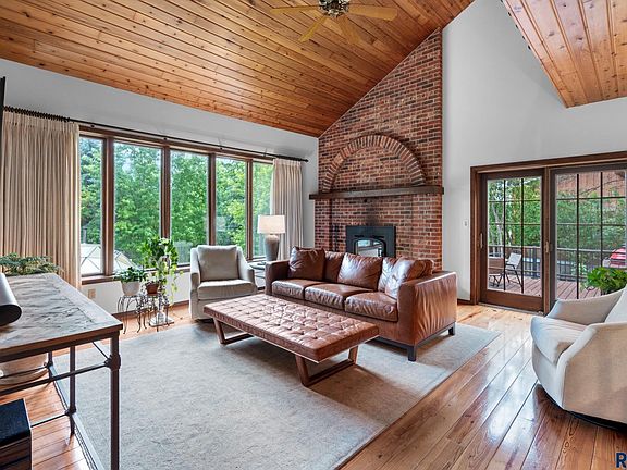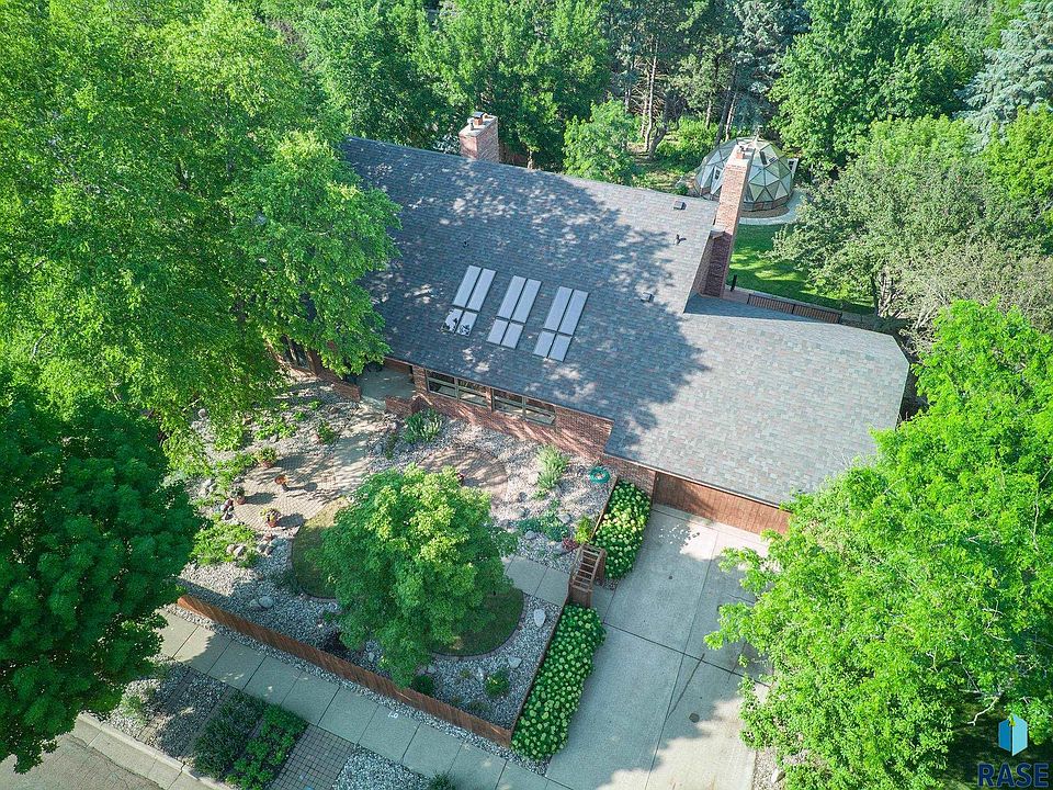 Welcome to your dream home perfectly nestled in coveted south central Sioux Falls. Situated on nearly an acre private lot this exceptional home is walking distance to park & bike trails. Welcoming front courtyard invites you into this distinctive home. The high-end kitchen is the heart of the home w/abundant cab space & coveted breakfast nook. Adjacent to the kitchen, a sunroom w/ built-ins offers endless opportunities. The main floor boasts a serene mstr bedroom w/a luxurious bathroom w/a beautifully tiled shower. The formal living room, w/soaring ceilings & abundant natural light, creates an inviting atmosphere. A 2-sided fireplace seamlessly connects the dining room & cozy sitting area. The main level also includes a screened-in porch. Upstairs you’ll find a sitting room overlooking the main area, 2 bedrooms & bath. The lower level offers 3 more bedrooms, bath, a gaming area & convenient kitchenette. The backyard is a dream featuring ample outdoor spaces including a geodesic dome.