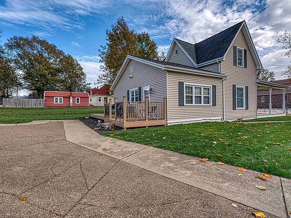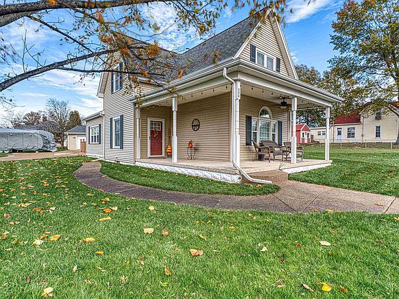 Welcome home to a wonderful older residence, thoughtfully remodeled to maintain the charm and character of an 1880 farmhouse while offering a unique, inviting ambiance. Meticulously maintained, this home features large open rooms, including an inviting living room that leads to a spacious dining area adjacent to a showcase kitchen. The kitchen boasts hickory cabinetry, butcher-block countertops, stainless steel appliances, a 5-burner gas range with convection oven, commercial grade overhead exhaust and a generous island with seating for four or more and a power tower. Completing the main level is the owner’s suite, featuring double walk-in closets and convenient access to an adjacent bath. The main floor also offers a spacious laundry/office area for added functionality. Ascending the stairs, you’ll find two additional bedrooms, a bonus area, and a full bath. Outdoor features include a wraparound covered front porch, an open deck, ample off-street parking, and a large two and a half detached garage—all situated on two city lots and fully enclosed with chain-link fencing.