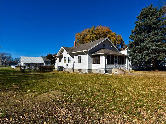 Come see this charming bungalow-style home on a spacious corner lot brimming with possibilities. The enclosed front porch provides a relaxing setting for morning coffee or quiet evenings and welcomes you through a vintage wood door into the living room. Original woodwork and soaring ceilings throughout the main level showcase the elegance of timeless craftsmanship. A seamless flow leads from the living room into a flexible second living space or formal dining room, then to the kitchen with updated appliances, and finally to the enclosed back porch-currently enjoyed as a dining area. Three main-floor bedrooms include built-in closet drawers and a convenient laundry chute (in one). One bedroom also provides a peak at beautiful hardwood floors beneath the carpet. Two bathrooms are also available on this level. The partially finished basement offers endless personalization potential, with a canning room, workshop, laundry, extra living space, and furnace room. Updated HVAC and water heater (replaced in recent years) deliver peace of mind. Outside, enjoy an expansive lawn, alley access, and a detached garage.