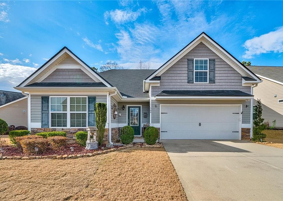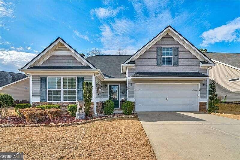 Welcome to this well maintained, craftsman style RANCH with 3 Bedrooms on main level with additional 4th Bedroom/Bonus room upstairs. This lovingly cared for home boasts an inviting entryway with hardwoods with 2 secondary bedrooms in front sharing a guest bathroom. The open concept living area includes a dining area with custom lighting flowing into a spacious family room. The granite kitchen features a breakfast bar, upgraded SS appliances with fridge that stays! Primary Bedroom boasts new laminate floors and a beautiful barn door leading into the ensuite bathroom with dual sink vanity, separate tub and shower. The organized walk in closet leads into the laundry room making it so convenient! The custom wooden stairs lead you to a large bonus room with closet, that can serve as a 4th bedroom, a private office, or even a cool media room! The professionally landscaped backyard is a relaxing oasis with covered porch, lighted gazebo, and fire pit-a great space to entertain your family and friends. BRAND NEW ROOF! This location can't be beat being minutes to Publix, Kroger, Walmart and Hwy 575!