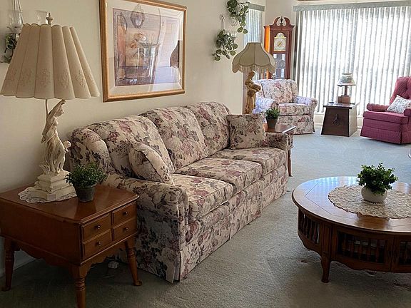 Great upper unit two bedroom, two bath condo in desirable Holiday Village East, a 55+ community with great amenities! There's plenty of space in this beauty, complete with bright sunroom and lovely wooded views. This open floor concept will provide all the space you~ve been looking for. All appliances are included in this spacious kitchen, complete with granite countertops and a newer stone-look floor. Laundry room and pantry are conveniently located off the kitchen. The master bedroom is spacious and bright, as is the second bedroom. Store all your fun stuff in the extra outdoor storage room. This beautiful community offers amenities galore, and the fees are low! Enjoy the gorgeous pools, community center, game room, exercise room, tennis courts, shuffleboard courts, pickle ball, or just stroll the walking paths around the fishing ponds. This is a great location, in a great community, and it won't last long!
