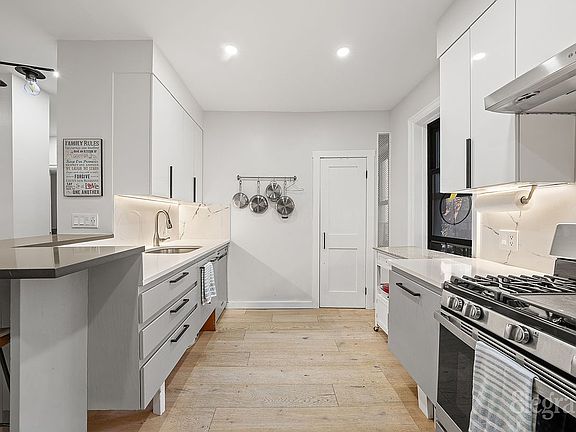 This meticulously renovated two-bedroom home blends comfort, functionality, and modern design within a desirable floor-through layout. High ceilings and dual exposures bring in natural light and invite refreshing cross-breezes, creating a bright and airy atmosphere.