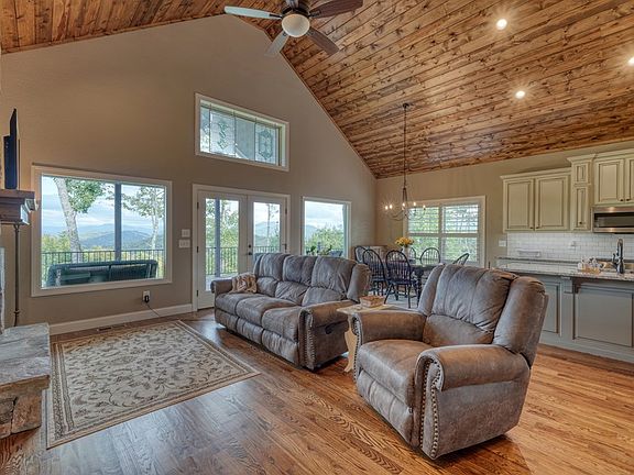 This immaculately maintained home is in mint condition and ready for you to move right in! Step inside to a bright and spacious living room featuring a beautiful floor-to-ceiling rock fireplace, hardwood floors throughout, and a tongue-and-groove wood ceiling that adds cozy mountain charm.Enjoy peaceful mornings and relaxing evenings on the rocking chair front porch while taking in the breathtaking views of the Young Harris Valley and the Western North Carolina mountains.The kitchen is a cook's delight, complete with granite countertops, stainless steel appliances, soft-close custom cabinetry, and a large pantry for plenty of storage. The primary bedroom offers a quiet retreat with a walk-in closet, custom tile shower, double vanities, and a tray ceiling for a touch of elegance. A second bedroom on the main level makes this home perfect for family or guests.Downstairs, the terrace level includes 3rd bedroom, a full bath, and tons of storage space—great for a growing family or weekend visitors. Outside, you'll love gathering around the fire pit to enjoy cool mountain evenings under the stars.A 2019 Kohler full-home generator (valued at $15,000) gives you peace of mind year-round. Homes in this neighborhood are selling fast and for top dollar, and this one truly stands out as like new!