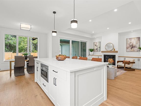Quartz countertopsWarm wood accentsModern appliancesDesigner tileCozy gas fireplaceCovered patioRoll-out cabinetry