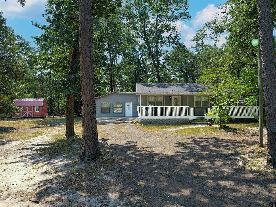 Take advantage of this unique/versatile lake area house floorplan. The main section of the home includes 3 bedrooms, 1 bath, living area and kitchen with a dining area and utility room dividing it from the attached studio style living/bedroom with private entrance, bath and kitchenette. The property includes 3 lots (almost an acre), a large covered front porch, a storage building with electricity and a covered sitting area and fire pit in back. Kings Country amenities include: security gate, boat ramp, tennis/basketball courts and play ground. Call today to schedule your private showing.
