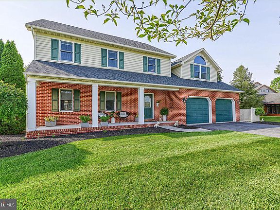 This spacious 3135 sq. ft. home is located right next to the library in Spring Grove! A brand new roof was installed in 2022! The front porch with the new columns gives the house great curb appeal! The open foyer features hardwood floors and a convenient powder room. The living room has crown molding. A bay window provides lots of natural light to the dining room with hardwood floors. The kitchen has recessed lighting, an island with large drawers and a pantry with pull out shelving. All appliances are included. The breakfast room has patio doors leading to the deck. An adjoining family room boasts a gas fireplace. Upstairs you will find the huge owners suite with vaulted beamed ceilings, 2 skylights, a circle top feature window, and recessed lights. The huge His and Hers walk-in closet is 10 ft. x 11ft. The adjoining owners bath has a large soaking tub, a stand up shower, double bowl vanity and tile flooring. The convenient 2nd floor laundry includes the Bosch washer and dryer. 3 more spacious bedrooms, one with 6 x 6 walk-in closet, make up the 2nd floor. The finished game room in the basement features a Brunswick pool table that is included. There's plenty of storage in the large utility area with an outside entrance, and in the extra storage room that has the basement refrigerator. There's even storage under the front porch. The entire interior of the house was painted in neutral colors in the past 10 years. A walk-up attic provides plenty of additional storage. The 2 car garage has a garage door opener with an exterior keypad. The large rear deck has a new custom awning for shade. Located on 1/3 of an acre with mature landscaping. Trees include maple, weeping cherry, dogwood, cherry, and a pine tree buffer. There's even a shed for your lawn equipment.