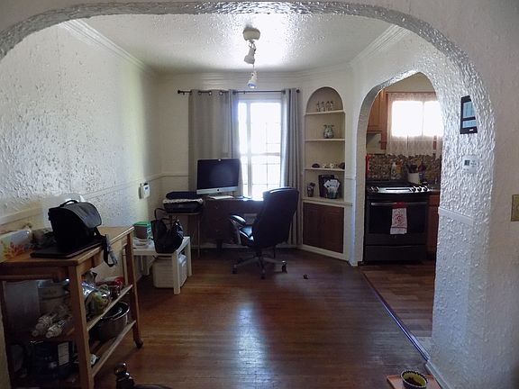 One of the few Spanish style homes in Elgin! Fantastic location. Walk to Wing Park, minutes from I-90 and Rt. 20. Home has charming features and with alittle TLC can be a beautiful place to call home. Original hardwood floors and windows throughout. Arched doorways. Spacious living room with fireplace which is open to the dining and kitchen. Large screened in front porch to enjoy those evenings of relaxation. Concrete patio in the semi private back yard for the grilling nights. Partial basement with access thru the large one car garage. Roof replaced in the past 5 years. New garage door, stove, washer and dryer. Bring your decorating ideas and turn this home into a charmer! Home is being sold "AS IS"