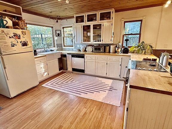 This well-kept home and property offers a great home base in the heart of Bozeman. The home features livable areas, thoughtful finishes, amazing two-sided wood burning stove, and plenty of natural light throughout. The kitchen is large and bright. Two good-size bedrooms. Large Laundry / storage room. Huge, fenced yard with shed, sauna, garden beds and woodshed w/ alley access.