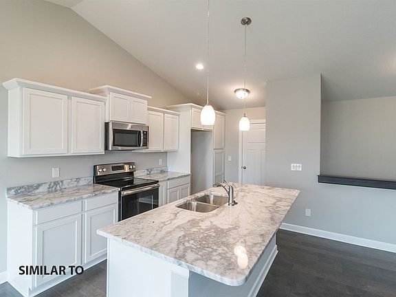 This charming ranch-style home offers a rare find with its 3 bedrooms and 2 bathrooms, along with a spacious 2-car garage. The thoughtfully designed layout places all three bedrooms on one side of the house, providing privacy and a serene retreat, while the heart of the homefeaturing the kitchen, living room, and dining areaflows effortlessly on the other side. Step into the expansive kitchen, where you'll find beautiful stained cabinets complemented by sleek quartz countertops, perfect for both cooking and entertaining. The cozy living room is enhanced by an electric fireplace, creating a warm ambiance, while the generous deck invites you to enjoy outdoor living. The master suite boasts elegant tray ceilings and a well-appointed master bathroom, featuring a separate entry to a large walk-in closet for all your storage needs. Conveniently located in the hallway near the bedrooms, the laundry room adds to the home's functionality. The unfinished basement offers a blank canvas for you to personalize and expand your living space, making this home a perfect blend of comfort and potential. Don't miss the opportunity to make this unique ranch your own!