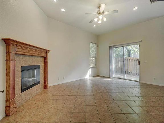 Two-car garageCarpet and tile flooringSmall yardSliding doors