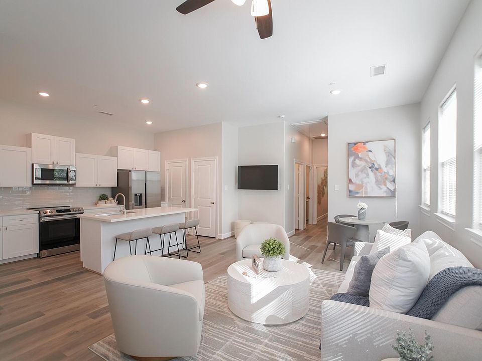 Refreshing hoa poolOpen floor planComfortable sofa bedAbundant windowsBeautiful neutral tones