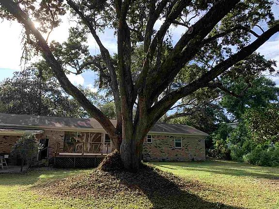 Beach Haven was named for it's close proximity to Bayou Grande. Older brick 3 bedroom 2 full bath needs a new family to love it. This corner lot is a block from the water but NO Flood Insurance required! Traditional floor plan with foyer, formal dining then large Great Room with corner fireplace, huge game room in lieu of a garage has room for pool table, air hockey and a wall of shelving for books and games. "The Man Cave" if you like! All bedrooms are on one side but all are decent size with good closets. Master bath has a 6' vanity and a walk-n-closet. Tub and toilet are separate. The unique feature of this property is the gorgeous heritage oak centered in this backyard. Large deck for bar-b-ques and a carport for protecting your vehicles. Location is 10 minutes to down. Convenient to military bases and a short trip to Perdido Key Beaches! Come See.