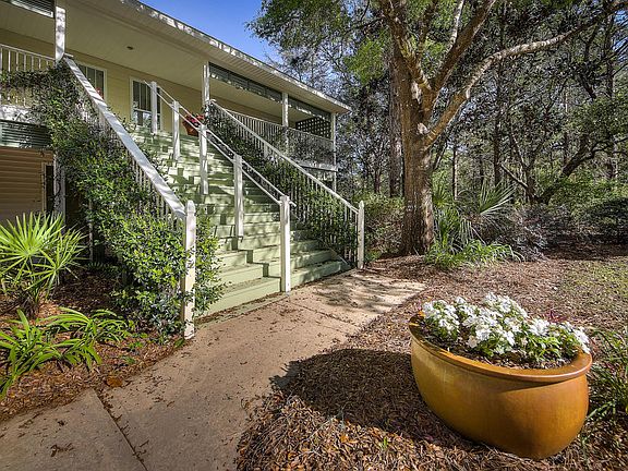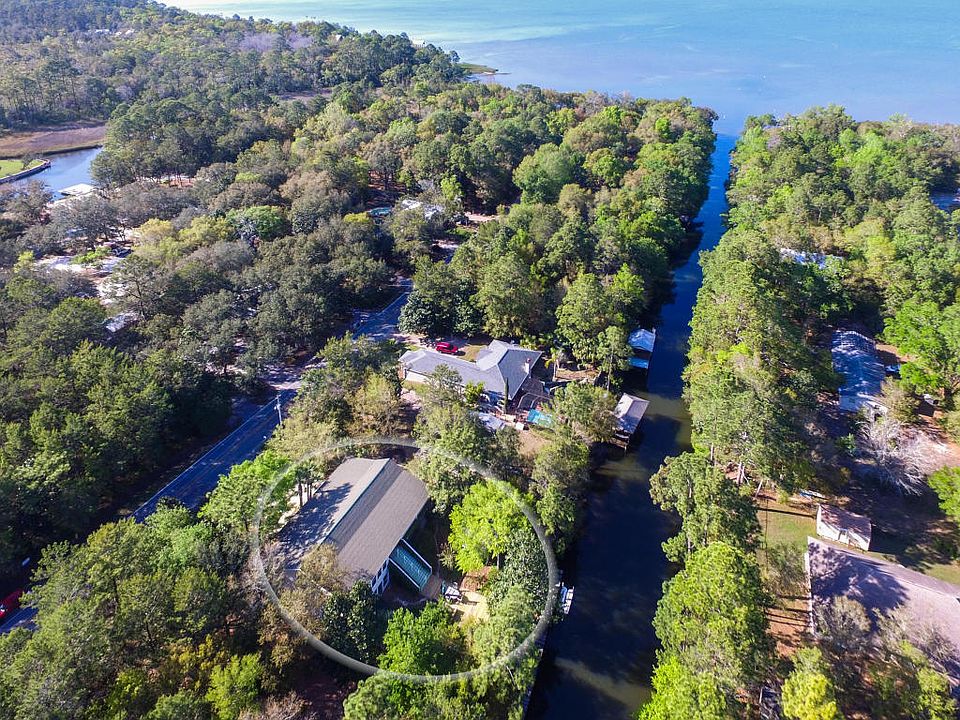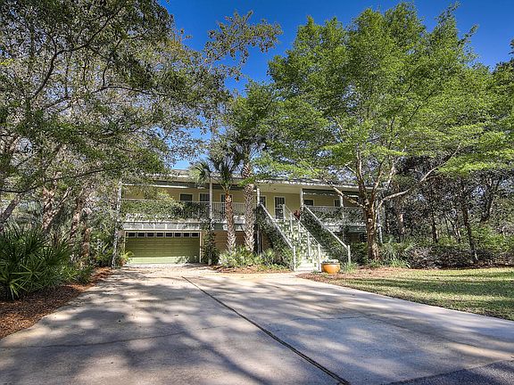This unique home layout allows great flexibility with its fully livable dual suite floor plan. Expansive stairs lead to a great second story living area with pleasant views of the canal, lush landscaping and treed skyline from the panoramic sun room and over 750 feet of low country porches. This home boasts beautiful views of natural greenery with a great mix of Magnolias, Oaks and Palms. A 75 foot (including floating wave runner dock) runs the full width of the lot providing plenty of space for one or more boats. Deep water access is at your fingertips with just a quick trip down the dredged canal to the Bay. The second level offers vaulted ceilings and two renovated bathrooms. Full Kitchens, spacious living spaces and Washer/Dryers are available on both levels.