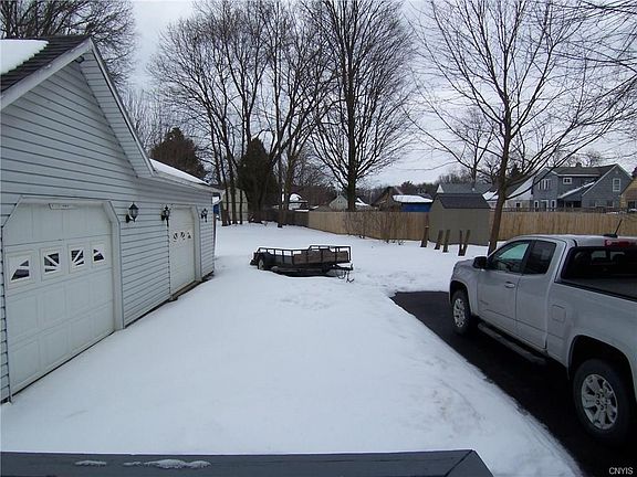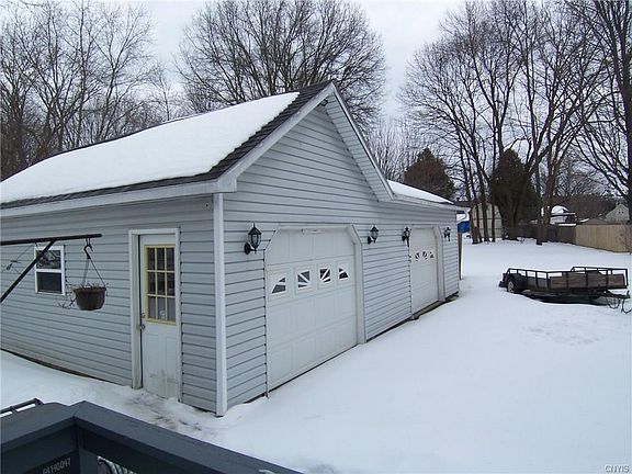 Beautiful and maintenance free Cape with 2 bedrooms down with a full bath. One large bedroom up with extra storage space. Nice living room with carpet, front enclosed porch. Eat-in kitchen is huge with newer appliances. Full dry basement offers bonus playroom. Central air. Two car detached garage and lovely lot.