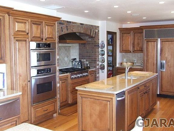 Beautifully remodeled home with panoramic views of the Bookcliffs, Mesa and the Monument. Incredible chef's kitchen with solid granite countertops, maple cabinetry, GE Monogram 6 burner gas stove, 2 dishwashers, oven, microwave and warming drawer. The entire home features gorgeous custom maple built-in cabinetry and desks. The property sits high atop Connected Lakes with uninterrupted views of the city, the Bookcliffs and the Mesa. Many rooms include Tasmanian Oak flooring, with travertine ti...