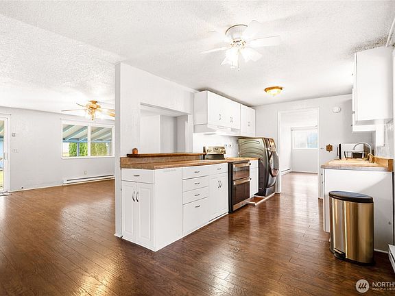 Welcome to this charming one-story, 4-bedroom home, perfectly situated on a level corner lot in a desirable in-town location—just minutes from the school, parks, and everyday amenities. Featuring 1.75 bath and two spacious living areas, including a cozy wood-burning free-standing stove, this home is perfect for relaxing or entertaining. Recent updates include a new roof and gutters installed in 2024, along with fresh exterior paint. Step outside to a covered concrete patio and deck, offering multiple outdoor spaces to enjoy. The detached 2-car garage provides ample storage and workspace. Well-maintained and move-in ready, this home combines comfort, convenience, and timeless charm—an opportunity you won’t want to miss!