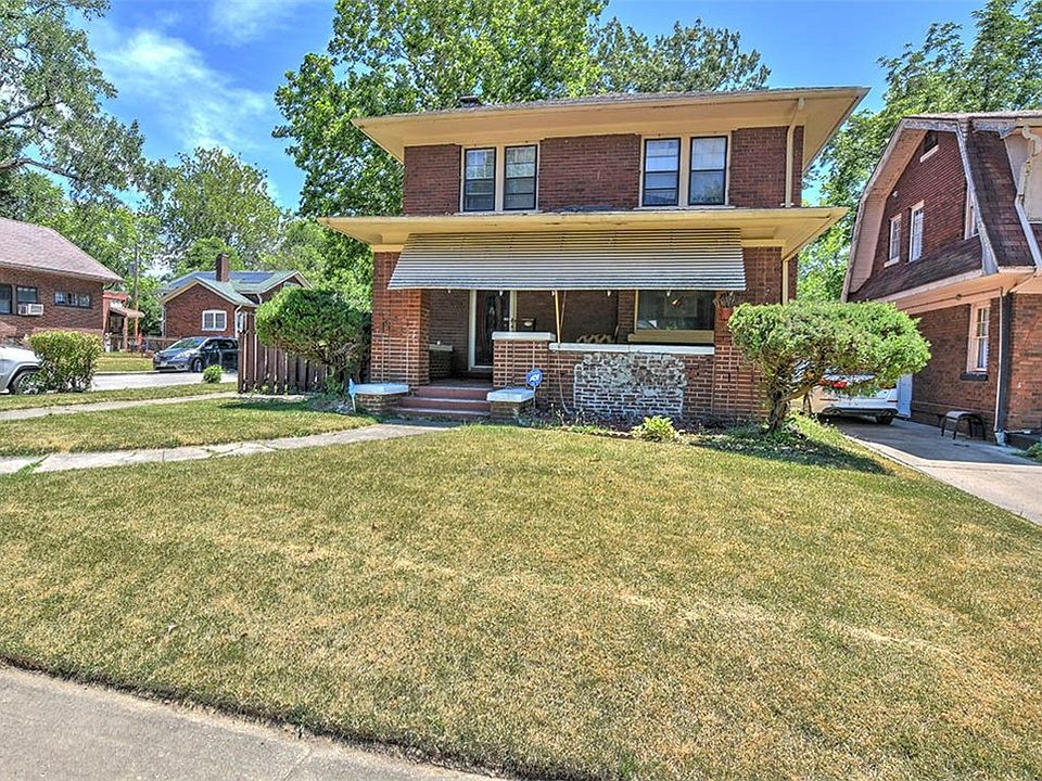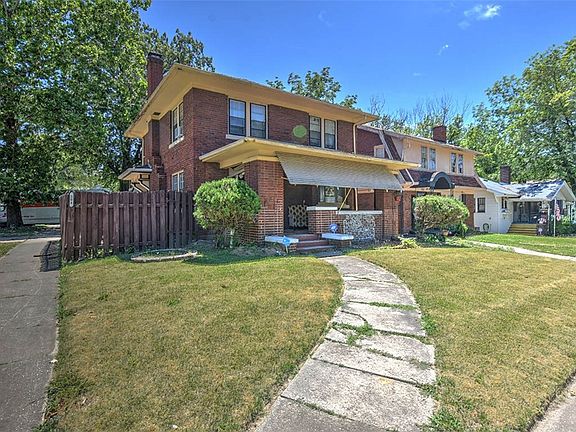 You've got to come check out this charming full brick corner lot home! This stately home is a great blend of historic details such as original hardwood floors, statement wood-burning fireplace, iron stair railing, and mission style archways combined with an updated kitchen featuring stainless steel appliances and an updated bathroom with a tile shower. 3 bedrooms are located upstairs and a 4th bedroom opportunity exists in the finished basement room that includes a spacious attached closet. Enjoy the multiple outdoor living spaces of the deep front porch perfect for relaxing evenings, or the side deck perfect for grilling and entertaining. House features an attached 2 car garage and all appliances stay, including washer and dryer. This home is priced to sell, so call your Realtor today!