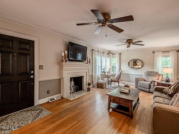 Presented for sale is this beautiful 3-bedroom, 2-bath ranch-style home in the heart of Burgaw, NC. Nestled on a spacious ¾-acre lot just steps from the iconic courthouse square in Historic Downtown Burgaw, this home perfectly blends classic charm with modern updates. Inside, you'll find timeless original hardwood floors, elegant crown molding, rich wainscoting, and detailed custom trim work. A cozy brick fireplace anchors the living area, while built-in shelving and cabinetry add both function and character throughout the home. The updated kitchen is a true showstopper featuring sleek white quartz countertops, stainless steel appliances, a walk in pantry, and plenty of workspace for the home chef. The home's layout offers comfort and flexibility with three generously sized bedrooms, two updated full baths, a sitting room attached to the primary suite, and a large family room with a built-in desk perfect for a home office. Every corner of this home reflects thoughtful care and quality craftsmanship. Step outside and enjoy the serene screened porch, perfect for morning coffee or evening relaxation. The spacious patio and fenced section of the backyard provide the ideal setting for entertaining or playing with fur friends. The large backyard also has a vast open area surrounded by mature landscaping which could be used for a large garden, swimming pool, or future expansion. This property has been meticulously cared for and is in move-in-ready condition. For added peace of mind, the sellers have completed a pre-listing home inspection which can be shared upon request. Don't miss your opportunity to own this rare gem and start to experience the best that Burgaw has to offer. Call to schedule your tour today!