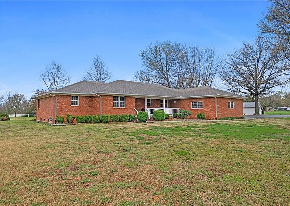 27+ Acres with ALL BRICK Ranch home built in 2003. 2135 Sq Ft. 4 Bed and 3 Full bath. FULL BASEMENT not finished. Large Covered Front Porch and Huge 4 Season Back Porch with Heat and Air. Several outbuildings that include a Barn, Oversized Single Car Garage, and an Oversized 2 Car Garage. Creek and Pond on the 27 Acres. Mostly Fenced. Amazing Deal. Public Auction will be held for the contents on May 18th. Open to Contingent Offers!